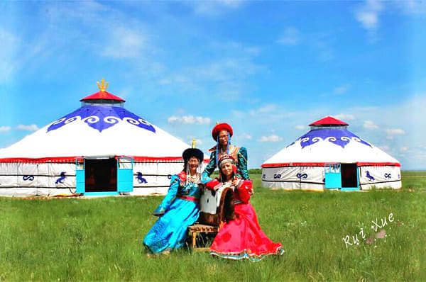 金帐汗部落本是一处历史古迹,王师傅建议我们不用花钱进去,他说:里面除了几个已经商业化了的蒙古包外,并无其他欣赏价值。如果我们对蒙古包有兴趣,他说未来的几天小超可以带我们去看草原深处真正的蒙古包和牧民的生活。额尔古纳市是我们第一天的终点站。一路上走走停停,快到傍晚我们才抵达额尔古纳市,小超的父亲把我们姐妹三人移交给了小超。额尔古纳这个城市很小(但之后我们所到之地很多都下辖于这个小市)。6月份的额尔古纳,早上3点多天就亮了,晚上8点多天依然亮着,10点暮色降临但天边仍有一片蓝色。D2.额尔古纳---根河-- 敖鲁古雅鄂温克使鹿部--满归小超和他父亲交接之后,便乐哈哈的对我们说:你们来呼伦贝尔草原旅游要记住,风景全在路上,没有哪一处的景点会比路上的景色更美!你们这次旅行玩的就是“穿越”大草原。小超带着我们走的是一条独特的线路。与旅行社的常规旅游线路不同,在方圆几千公里的茫茫草原中,我们走过的线路经常是人迹罕至。但这条线路既能看到所有景区,甚至还比在景区内所看到的景观更迷人壮观,是真正的草原原生态。既可以避开游人如织的嘈杂,又可以绕开了收费点,免去了所有的门票支出(敖鲁古雅,北极村和阿尔山景区除外)。更重要的是时间掌握比较自由。特别是对于我们这种喜欢拍照的女同胞来说,随时有美景,随时可以停下来。让我们有更多的时间和自由去选择不同的拍摄角度,捕捉那稍纵即逝的美景。 看到梦里的画面成为现实出现在自己眼前的时候,那种梦想成真的激动才真正让人心潮澎湃……我们撒丫子狂欢了起来,摆各种姿式拍照。