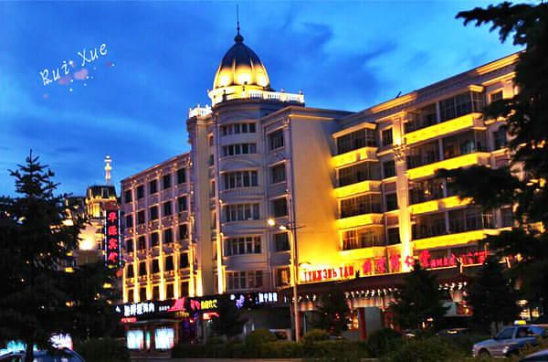 参观完毕套娃广场和国门,小超便带我们到草原饭店去吃有名的涮羊肉。具说那里的羊肉新鲜,桌位还要提前预订呢,不过这一切都不要我们操心,小超已提前都安排好了,真省心!(这里不得不提一句,在呼伦贝尔的包车行业有个不成文的规则。包车费包括司机的车钱、油钱、过路费和服务费,师傅们的住宿也不用管,接待的地点给他们提供通铺之类的地方睡觉。但司机的吃饭是要包车人承担的)。其实途中多一人吃饭完全不是什么问题,但小超却全程都吃得很少,基本都在招呼我们吃,好的贵的东西更是很少碰,搞得我们都很不好意思。 夜幕降临,霓虹闪烁,灯火辉煌,华灯初放的满洲里更加迷人。路灯大多是七彩的,高低不同的建筑物被五颜六色的灯光环绕,显得交相呼应,错落有致。著名的步行街上游人如织,不时可以看到不同年龄段的俄罗斯人三三两两地或购物,或散步,仿佛在自家小院里一般悠闲自在,倒是我们有一种身处异国它乡的感觉。 街道两边商铺林立,大都悬挂着出售俄罗斯纪念品的招牌。不过店里的商品风格品种如出一辙,缺乏精品和特色定位。店里的顾客也并不多,而且大多数人都只是浏览。据说店里的东西大都是山寨版的,并不是真正的俄罗斯商品。