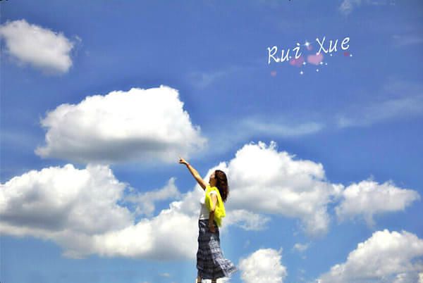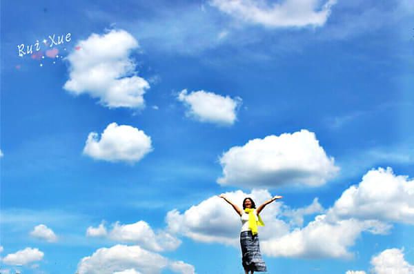 张开双臂,拥抱蓝天。希望可以够到一朵云彩,带回家,挂在自己的房间。