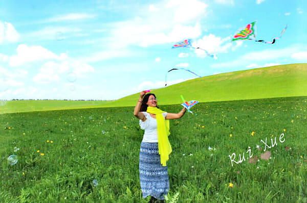这是一片多情的草原,有绿色的畅快,金色的遐想,白色的梦幻。 放飞心灵!让心随风筝一起飘向远方吧……