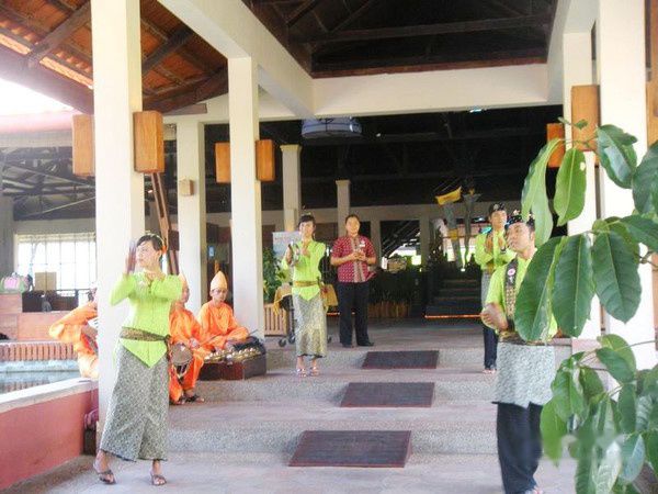 坐上小巴,没有一会就到了度假村。门前有工作人员穿着印尼的传统服饰跳舞欢迎我们的到来,一进大厅有一个PL的印尼MM递给我们一人一杯饮料,不知道是什 么饮料,不过中间用竹签插着的水果有点像哈密瓜的味道。拖着行李直接在柜台前排队准备CHECK IN,不过运气不好,我们排着的那个队伍前面是一个印度大叔,大叔貌似是DIY旅行的,一直跟前台的工作人员沟通了N久,旁边的两个队伍都走了几波人了, 他才弄好。不过好在我和Linda的行程是旅行社都定好了的,钱也直接交了。所以将行程单和护照给了酒店的工作人员之后,几分钟就弄好了我们两的 CHECK IN,另外还附赠了两天的早餐和午餐。(PS:1.旅游自由行,建议还是提前将住宿和往返的交通工具定好,这样比较省事。2.酒店有无线网WIFI,不过 记得和前台说一声,他们会将ID和密码写好交给你。)