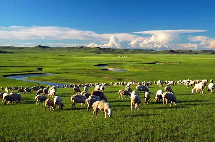呼伦贝尔大草原是“我国目前保存最完好的草原,水草丰美,有"牧草王国"之称。总面积一亿四千九百万亩的呼伦贝尔大草原就是这样一片令人神往的土地,它位于内蒙古东北部,因境内的呼伦湖和贝尔湖而得名。每逢盛夏,草原上鸟语花香、空气清新;星星点点的蒙古包上升起缕缕炊烟;微风吹来,牧草飘动,处处“风吹草低见牛羊”;蓝天白云之下,一望无际的草原、成群的牛羊、奔腾的骏马和牧民挥动马鞭、策马驰骋的英姿尽收眼底。呼伦贝尔大草原是我国现存最丰美的优良牧场,因为几乎没有受到任何污染,所以又有“最纯净的草原”之说。