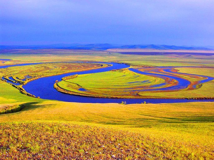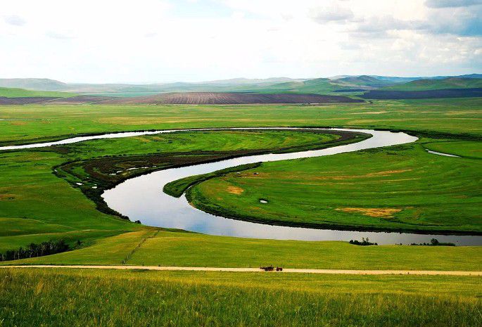 2,莫日格勒河,每逢夏季,在莫日格勒河两岸,陈巴尔虎旗的蒙古族、鄂温克族的牧民们便在这山清水秀、水草丰美的所在,自然形成一个游牧部落群体。蓝天白云,弯弯河水,茵茵绿草,群群牛羊,点点毡房,袅袅炊烟,使这里成为世界少有的游牧圣地。从金账汗景区后边的草原小路继续向莫日格勒河上游走,有几个河湾非常美。在抵达金账汗景区之前500米处,右转有一条草原小路,是土路来的,大雨之后道路湿滑泥泞不可行。好天气的话沿着这个小路继续向前走大概20公里左右抵达一个比较高的山丘,站在这个山丘之上俯拍莫日格勒河最美。