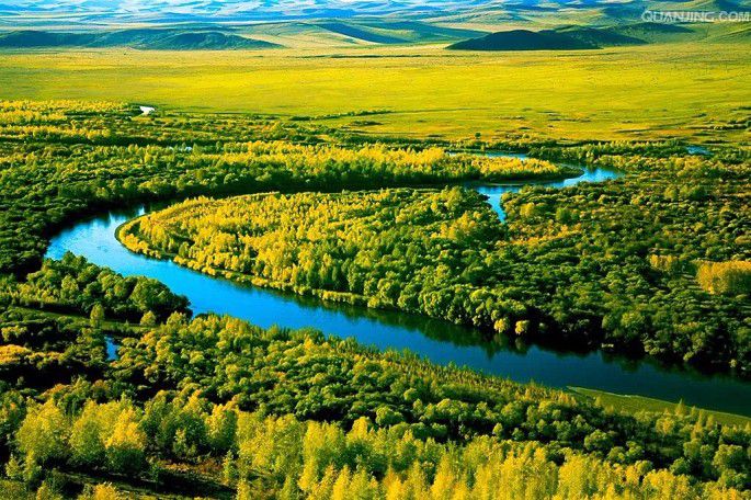 5,根河市到额尔古纳市的路上一段风景颇佳,可以说春夏秋冬这条路都是当地摄影人非常认可的一条路。路一旁是清澈的河流,另一旁是青青的草地,远处是茂密的森林,丘陵。河畔饮水的牛羊,林间的野花,走到山丘上俯视河湾都是可以摄影的元素。