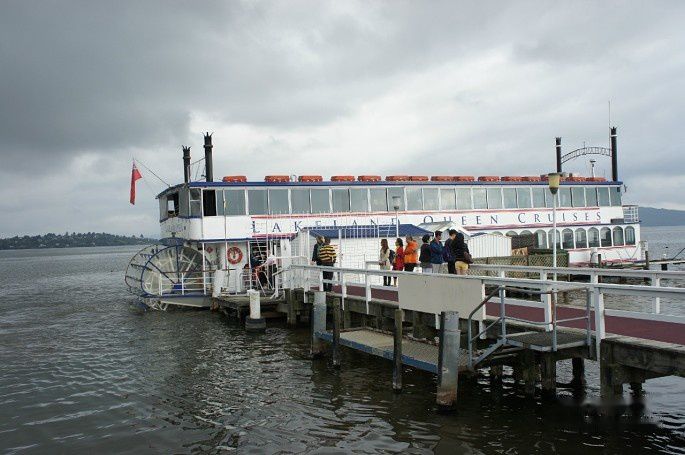 我们在罗托鲁瓦入住了一宿,第二天的早餐被安排在罗托鲁瓦湖的皇后号游轮上进行。早餐是中西式结合的自助简餐。
