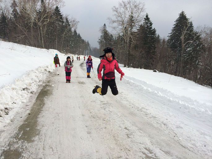 结婚前就和老婆许下心愿,在我们的有生之年要将中华大地的省份走遍,2013年12月12日,这是我们结婚一周年的纪念日,一个月前我们就做好行程规划,准备从中国最北方的省份—黑龙江开始走起,我们预订的是(D)线:14期,哈尔滨—东升(徒步穿越)雪乡—亚布力激情滑雪—哈尔滨五日的行程! 12月11日,怀揣着激动的心情从南京出发,老天爷也算给力,之前持续的雾霾在我们出发前的两天开始消散,航班没有受到任何的影响,准时准点的降落在哈尔滨太平国际机场,出发若干天前,就收到了来自领队“闹闹”给我们发来的叮嘱短信,详细记述了我们下榻宾馆的地点,地方选的不错,靠近哈尔滨的中心地段—中央大街,我们将行李安置好后,给闹闹去了电话,我们约好时间准备下午见面。等我和老婆从中央大街逛了一圈回来,就见一个女孩坐在宾馆大厅,看到我们出现,她起身,报以热情的微笑,直觉告诉我,名如其笑,或许这位就是闹闹,果不其然,一番简单的自我介绍:“你好,我叫闹闹,是个土生土长的东北大妞!”她将我们后面几天的行程安排告知了我们,之后就告诉我们宾馆附近有哪些好吃的,哪些好玩的,叮嘱我们早些休息保存体力为第二天开始的行程做好准备!(第一天的初识带给我们对闹闹的印象符合东北人描述里面的豪放热情,从她的介绍之中可见一斑,当然,我也看出她工作中的认真,整个下午她都一个人坐在宾馆大厅里,据说是在等别的队员,大约三个多小时) 12月12日,今天是我们夫妻的纪念日了,一大早,闹闹就带车在宾馆门前等我们,之后我们又去接上了此行的另一位队员simon,向着我们的第一个目的地东升出发,路上,我们居然看到了雾凇的奇景,或许是像Simon哥说的,大家人品都不错,老天爷眷恋我们,顺利抵达东升之后,算是见识了我们夏导的好人品,东升里的客栈老板娘,别的团队里的领队帅小伙,貌似每一个人都知道闹闹到了,都过来到她那里打个招呼。(第二天的大部分时间都是在车上度过的,给我们留下啊深刻的印象的除了沿途的雾凇美景,还有就是闹闹照顾全局的能力,驾驶员师傅没吃早饭,她递上巧克力,看见我们留恋雾凇美景,主动要求停车给我们拍照,到了东升之后,帮着老板娘张罗着忙前忙后,点滴之间透露出这个东北大妞待人诚恳)。 12月13日,今天就是此次旅行的头道菜,徒步穿越15公里了,这一路上的景色真是让我们这几个南方人真正领略到了东北雪景之美,什么银装素裹,粉妆玉砌,再华丽的辞藻也无法表达这些美景带给我们的震撼,简单的休整之后,我们又向着雪乡进发,之前听说雪乡,就是在新闻上看到《爸爸去哪儿》的第一季最后一集是在这里取景,到了之后,感叹于湖南这群综艺才子们的取景,高!!!~中国第一名头的确不是盖的!!!晚上,我们一行四人,找了个饭店,整了一只烤兔子,过瘾啊!(第三日的行程耗费体力,可是在闹闹的领导之下,我们却觉得并不辛苦,合理的安排时间让我们更早的抵达了雪乡,这一日,原计划的安排是我们还是要男男搭配睡一间的,不过闹闹主动找我们,帮我们积极争取了一个夫妻间,让我和我老婆能够住在一起,这让我们很是感动,也让我们弥补了一周年没有同住说说话的遗憾,据说后来她是找了个客栈跟老板娘凑合了一晚!三天下来,闹闹的接待工作得到了我们夫妇,simon哥的一致好评,Simon哥主动提出我们大家请闹闹吃顿饭,还说这小姑娘真的很不错!!!):