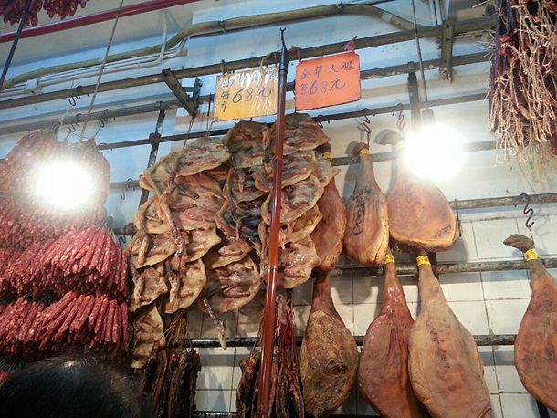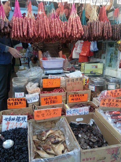 海味街的具体位置在上环德辅道西,文咸西街与永乐的海味市场历史悠久。走在海味街上,街道两旁里里外外排满了种类繁多的干货,黑色的耗干,橘色的虾米,干鲍鱼,海参以及名贵的干贝,鱼翅等,琳琅满目,甚为壮观。