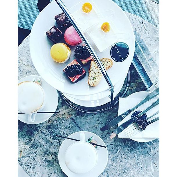 推荐一下这款天际下午茶2人套餐,两杯香浓咖啡、精巧细致的马卡龙和开心果咖啡饼、浓郁芳香的迷你奶冻和迷你芝士蛋糕、芝士黑椒蝴蝶饼和巧克力布朗尼,配上360度香港景色,实在是味觉和视觉的双重享受!