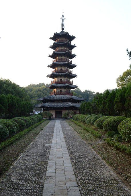 延庆寺塔位于松阳县城西3公里塔寺下村。楼阁式砖木结构,六面七级,中空,可登塔顶;斗拱瓦镏作双卷头,山檐舒展平缓,铁质塔刹相轮为卷草图案,曲线流畅;塔壁朱画飞天,依稀可认。额榜“延庆寺塔”为沙孟海先生手书。为省级文保单位。