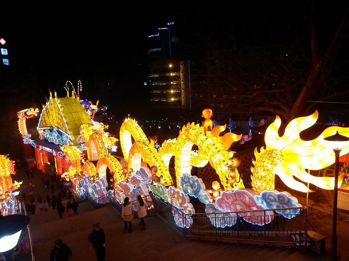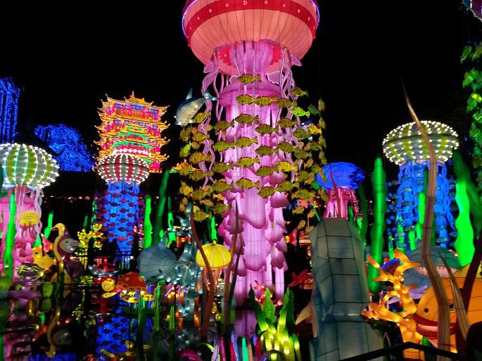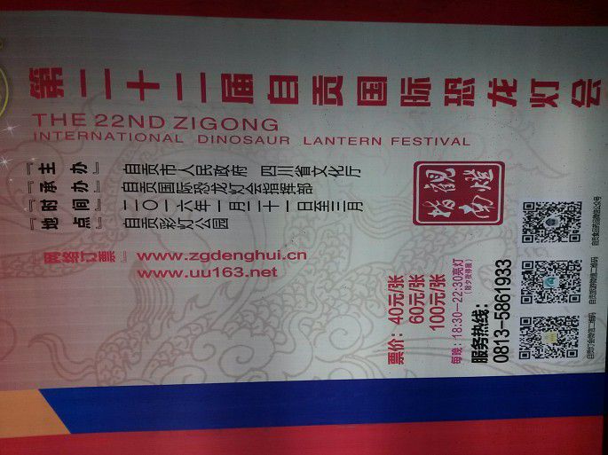 听说本届2016年自贡灯会由自贡市人民政府、四川省文化厅主办,以“美丽中国梦、璀璨自贡灯”为主题,着力在题材选择、工艺技术、表现形式、娱乐互动等方面加以突破,更加注重现代技术与传统技艺的结合,在灯组的设计制作中不断注入新的元素,采用新的工艺、新的光源,充分彰显自贡灯会“形色声光动”的艺术特色;更加注重本土文化与国际文化的融合,在呈现盐龙灯特色地域文化的同时,增添展示异域风情,力求给游客带来不一样的观灯体验。园内灯组突出了“最炫中国风、浪漫法国情、伟大民族魂、吉祥中国年”等四大核心板块,共展出大中型灯组128组,11万件现代光源组成的氛围彩灯铺天盖地,灿若星河,自贡彩灯公园成为灯彩的世界,欢乐的海洋。从自贡灯会官网上了解到灯会于1月21日已开幕了,大概开展54天左右,结束时间还没确定,一定高大上的好看,年前门票相因(便宜)些,赶快走起!