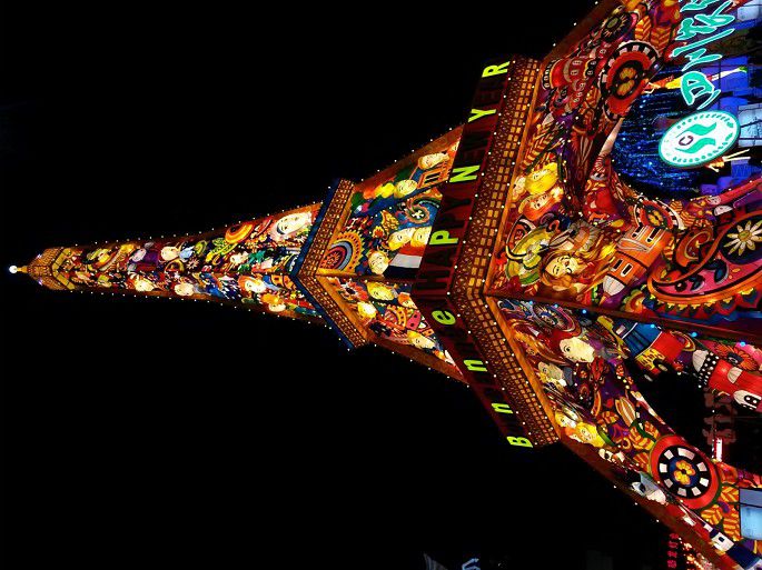法国标志建筑,横起照的,上传前没调方向,就请您活动一下脖子看埃菲尔铁塔吧。