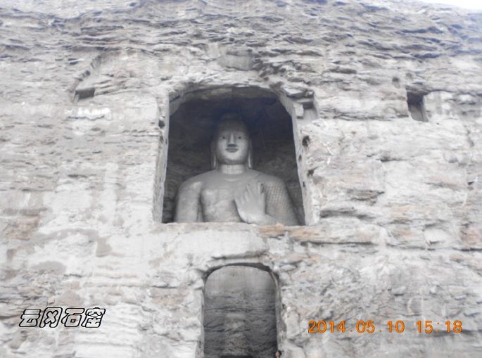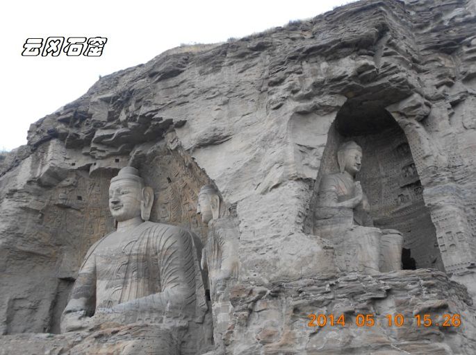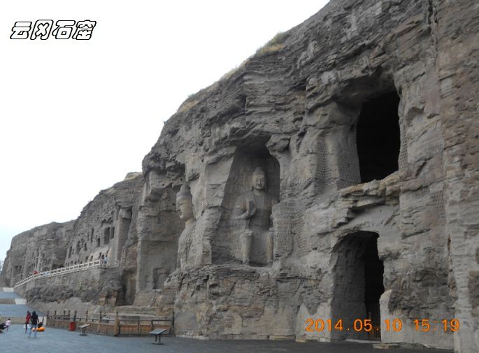 到达第一个石窟时,看到前面有一个旅行团,于是我们两个便是在这样一边蹭旅行团听导游讲解,一边自己游走中将云冈石窟参观下来的。