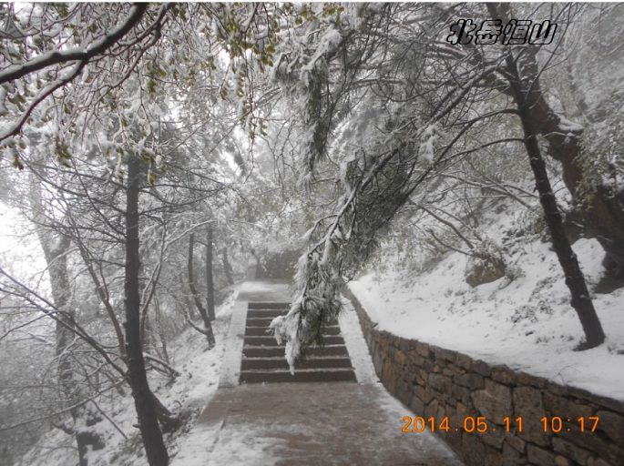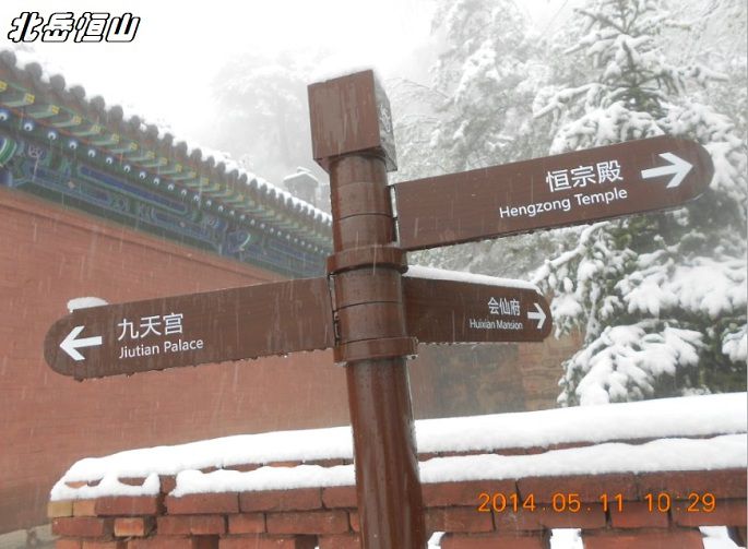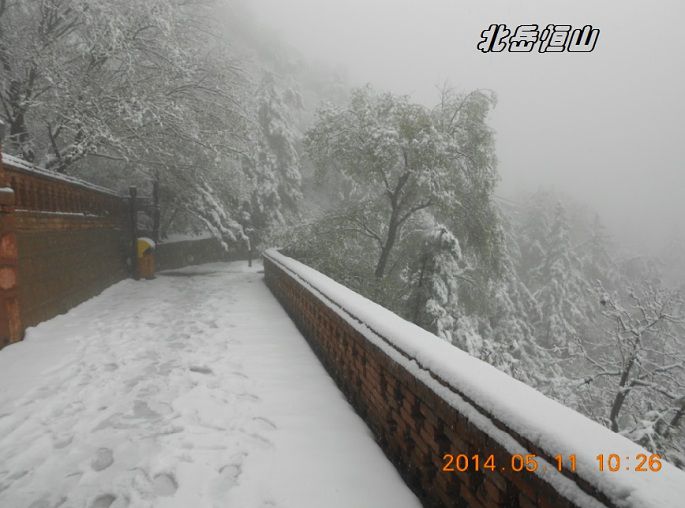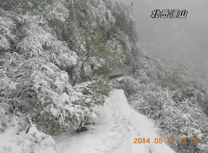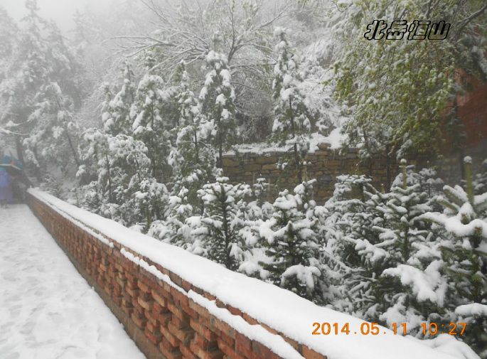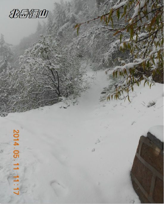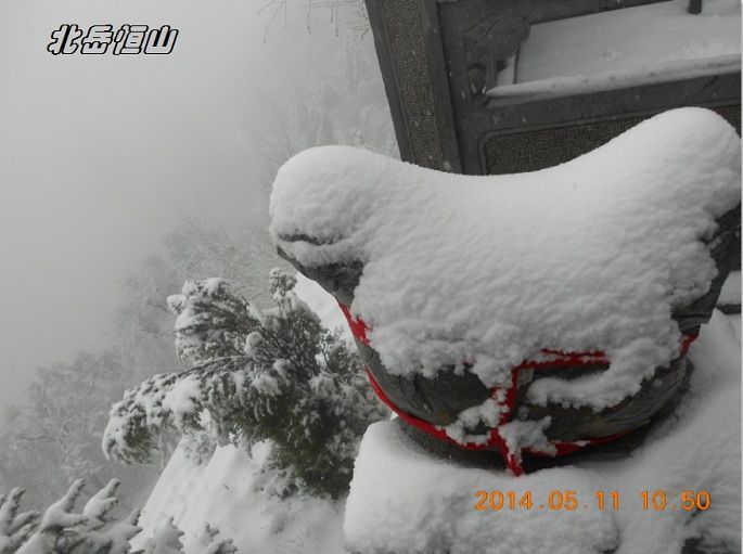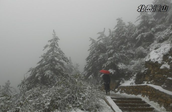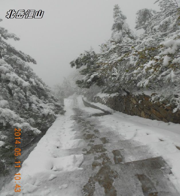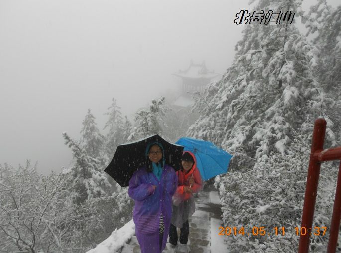 雪实在是太大了,本来想要继续向上顶峰走去的,可是却被告知因为雪太大了,为了游客的安全着想,前方道路已被封了,不让登顶了。没办法,即使我们不畏险阻,但景区工作人员也不让我们前行,毕竟他们得为我们每一位游客的安全负责滴。一路走来,虽然脚上套了个胶袋,但此时我的鞋子早已全湿了,冷得我直打颤,于是在会仙府逗留了一会之后,我们便决定下山了。