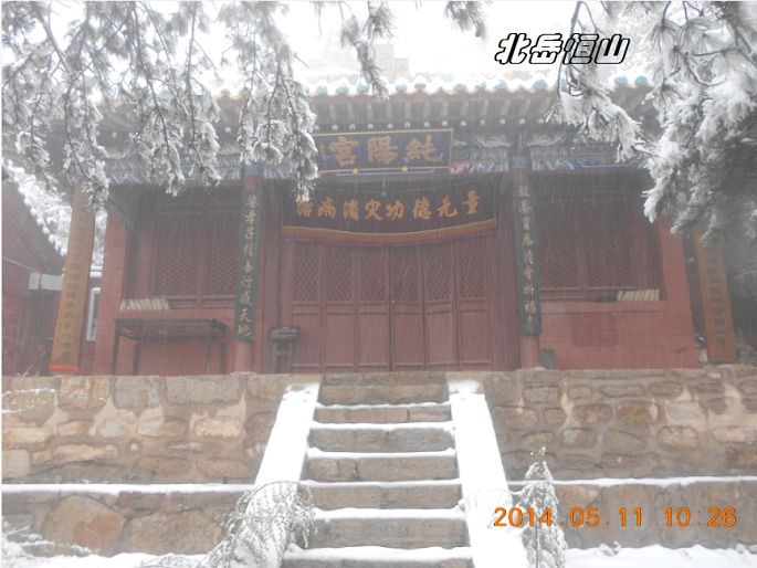 阶梯的坡度不小,路上更是覆盖了一层厚厚的雪,顶着雪,埋头一路攀登,很快便到了纯阳宫。