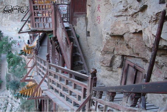 悬空寺建成于1400年前北魏后期,是中国仅存的佛、道、儒三教合一的独特寺庙。原名“玄空阁”,“玄”取自于中国传统宗教道教教理,“空”则来源于佛教的教理,后因整座寺院就像悬挂在悬崖之上,而在汉语中,“悬”与“玄”同音,故而改名为“悬空寺”。