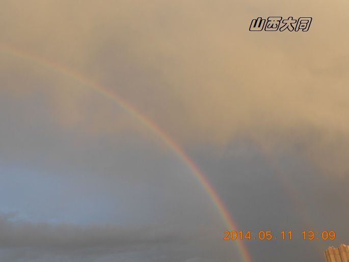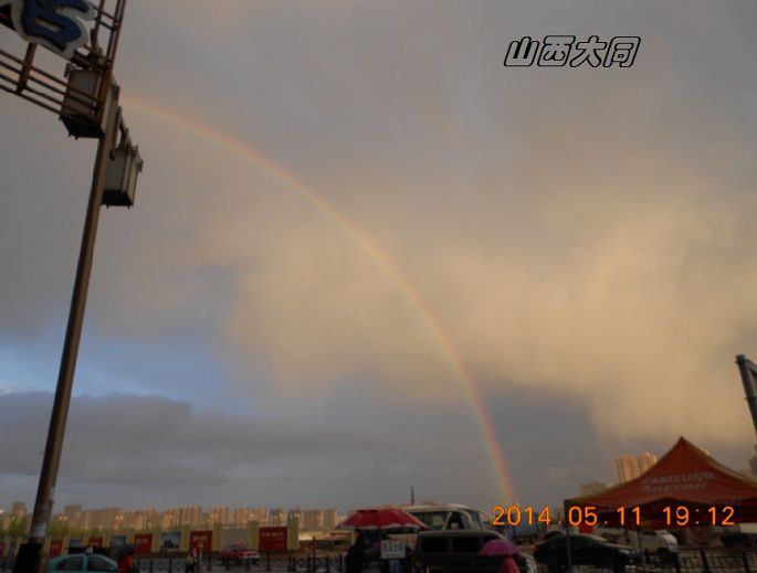吃完晚餐,走在街市上慢慢散着步,这时,天空突然出现了一道彩虹,我已很多年没见过彩虹了,着实让我惊喜了一把。