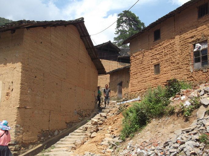 红色的夯土泥墙、小青瓦覆顶,基本上为三合院和一字屋,泥木结构的二层楼房,两侧设耳房,中轴线上布局合理,传统风貌协调统一,传统建筑用地面积有50亩之多。