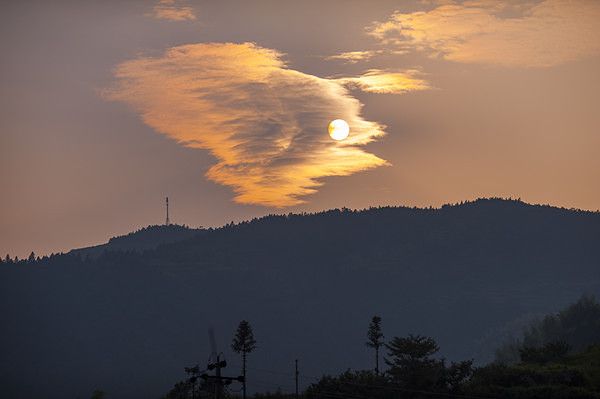 摄影点有些难寻,不认识人恐怕只能在寨头下的摄影休闲园徘徊。问问当地人或过云山居主人即可,沿着山路向下,沿着标示驶进寨头村,走上去估计10-15分钟的山路。在这里拍摄一定要赶到好时光,比如清晨的五、六点,云雾晨曦作品多出自于此时;而当时正值黄昏,虽然当天光线不好,云层不够通透,但出现了小小的火烧云场面,还是相当美的。