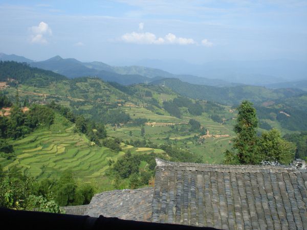 早上吃的蒸饺和馄饨36元。从江--肇兴每天7:50,13:00各一班车。19元,2个小时。一路上许多山路段都在拓宽,但是不影响通行。肇兴的寨子一条主路也在修,以至于有些尘土飞扬,初入肇兴有些失望。汽车停在乡镇府前的空地上,看到一个胡同口,里面有几个池塘,有一栋比较新的侗楼,挂着“界池旅馆”的招牌,进去看看房间四壁都是木板,干净整齐,木质的窗户打开着,看到远山近水,就这样决定住下了,70元/标间。放下背包,洗把脸,就开始溜达肇兴。许多侗族人自己染布,挂晾的布垂下数米,轻轻地看着河水,打量着游人。晒太阳的辣椒到处都是。中午在阿美餐馆就餐,65元,味道还不错。有客人自己在市场买菜在此加工,看着也很诱人噢!慰劳过肚子,就在路边等车,所有往上游去的班车都经过堂安,4元,15分钟,下车步行15分钟就到堂安了,没有丁点商业化的一个侗寨。然后顺着梯田徒步经过厦格寨子再顺着一条梯田间的一条石子小路就可以走回到肇兴了。路上远远望着密密麻麻的的肇兴侗寨,陪伴着梯田,稻浪轻摆,一弯小河从寨子里流出,马儿摇摆着尾巴在河边饮水,这时候才感觉到最美乡村的味道。全程放松往返约4小时。晚餐30元。