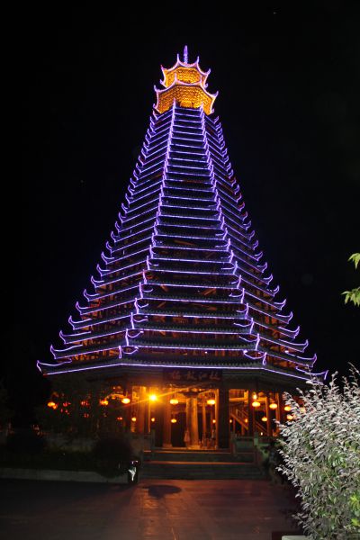 早上在三都车站门口的“沙县小吃” 34元解决了早饭。8:45坐车三都----榕江,40元/人,一路高速,穿山越洞。山上一座座吊脚楼簇拥在一起组成一个个寨子,层层梯田,山头云雾缭绕。10:45到榕江,一个又脏又破的小城。11:00榕江—从江,25元/人,最晚的班车是17:20,40分钟一班。14:30到达从江。就住在车站对面,70元。简单吃点24元,包车30元到7公里外的岜沙,岜当地人发音是bia。在岜沙看到很原汁原味的苗寨生活。听到一家木楼热闹的很,我们敲门,主人们热情邀请上楼看景聊天。还有一岜沙男子佩刀扛枪让我们拍照。联系的士司机,返回到县城的西边看新建的“从江鼓楼”,有29层高。在广场上意外收获了晚上20:00有免费演出,某领导真是理解我们的心情噢。就近吃了晚饭75元,然后看演出。返回宾馆,此时此地竟不好打车,联系司机过来接我们,8元。一条大河穿城过,从江夜景打造的也很美滴。