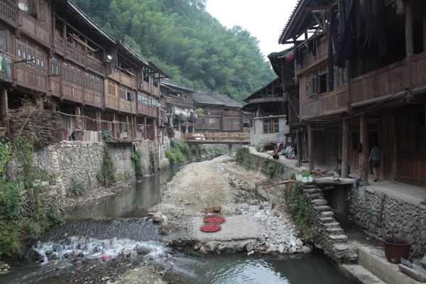 早餐33.5元后,就在路边坐上到黎平的车,20元/人。在黎平站里看到到天柱的车途经隆里,15元/人,就坐上。大约1小时就到隆里古城的门口。隆里古城免费。石头铺就的每一条路面,房屋古色古香,整个古城宁静安逸,是个闲情的地方。住宿在龙溪人家,80元/间。下午下起了丝丝雨,无论是打着雨伞漫步古城还是躺在客栈的摇椅上看着露草红花,都是相当的悠闲有韵味。晚餐15元,就在龙溪人家,自家的厨房,老板买菜做饭,好香噢!