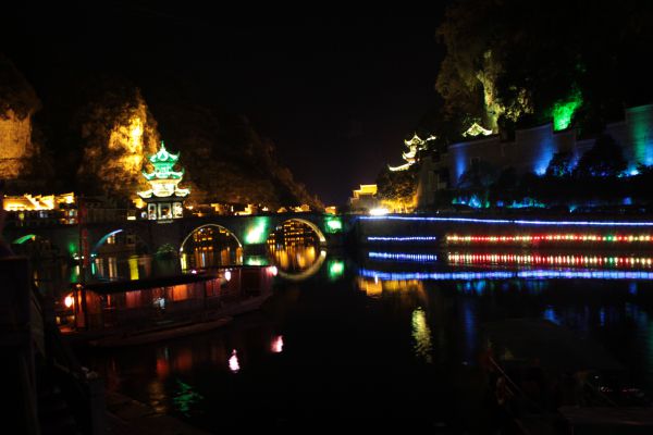 - 荔波县城晚上有实景演出,20:00开始,若是观看,在鸳鸯湖买票,划船就免费了。荔波小城干净整齐,夜景很美。