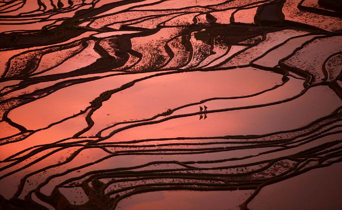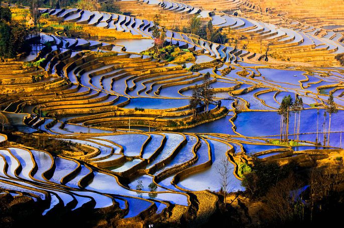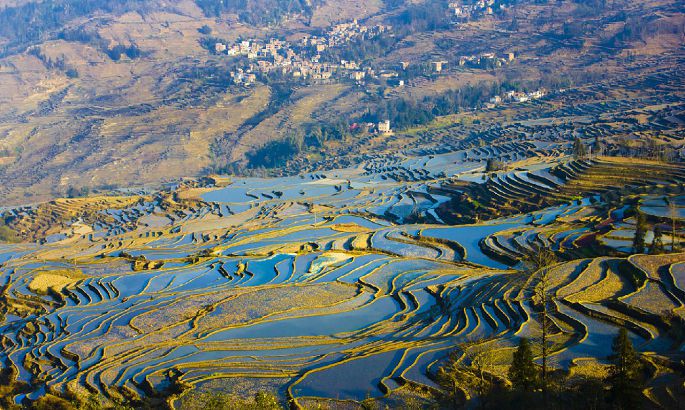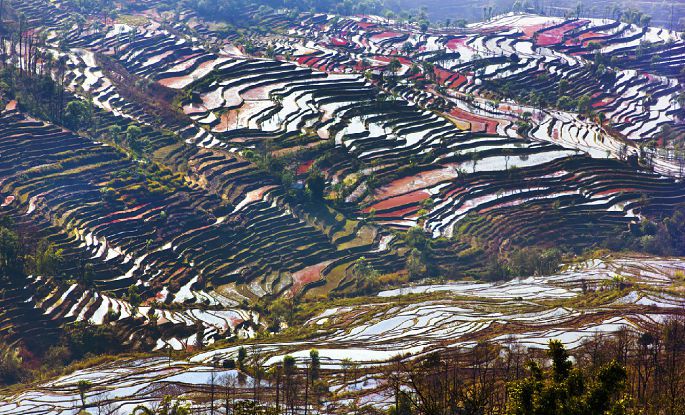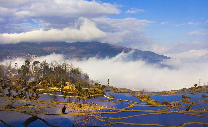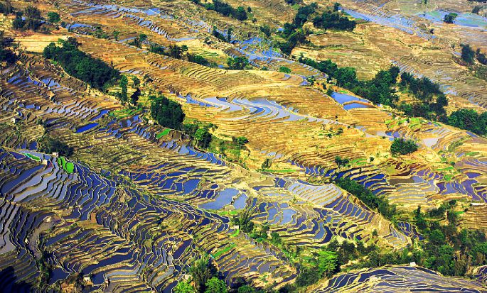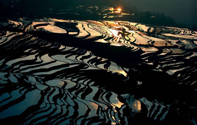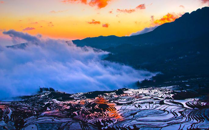 元阳梯田几乎是每一个摄影爱好者都想去的地方,五彩斑斓的倒影,优美硬朗的线条,山呼海啸般的云海,以及美丽的哈尼族,彝族村落,都给人提供无限的摄影题材。即使是作为普通的游客,元阳梯田一样是一个非常好的徒步旅游的地方,哀牢山上四季如春的气候,新鲜的空气,没有污染的农家美食,淳朴热情的村民,所有这些都是我们生活在城市里的人所向往的。