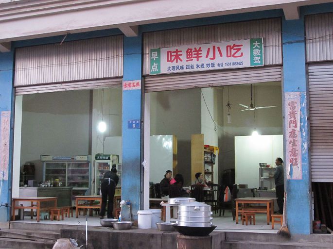 7点起床,六库还是一片漆黑。7:30在味鲜小吃店吃早餐(4人共花了37元),有各种云南米线(7元一碗)和馒头等。赶到旁边(南江宾馆正对面)的圣恩堂听唱诗