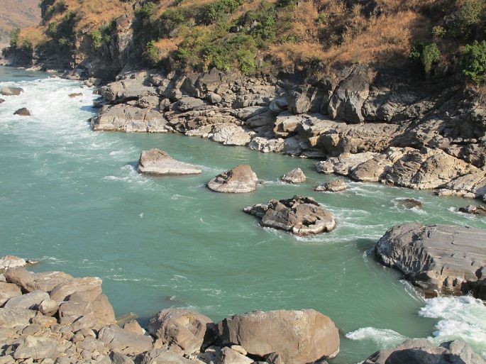 11:10见江中松--怒江中一块石头上长的一颗小松树