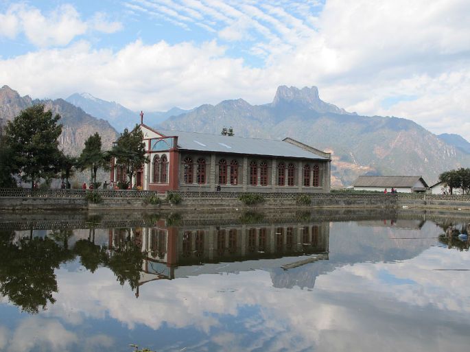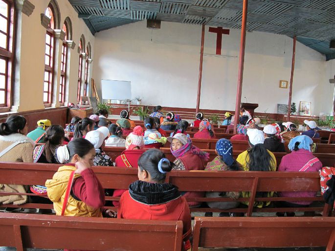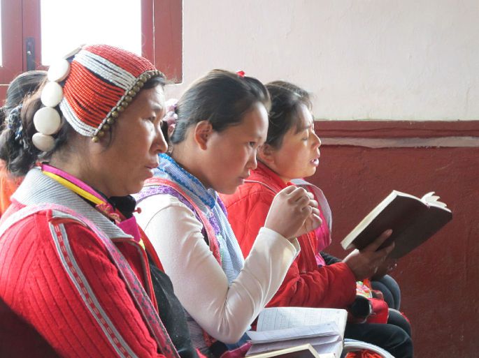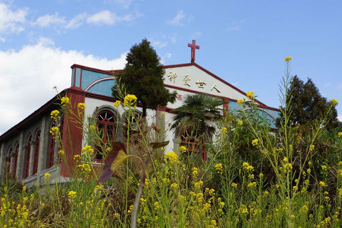 圣恩堂每周六晚7点,周日8点,12点,16点各有一场唱诗。8点教堂里的人并不多,聆听着原生态天籁般的无伴奏多声部合唱我们也忍不住拿起歌本加入唱诗队伍。听说中午12点人最多,是用傈僳语颂唱。