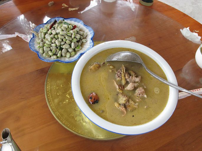 14:41回到卡丹姐农家,一盘香喷喷的鸡汤已经做好了,5人狼吞虎咽一扫而光
