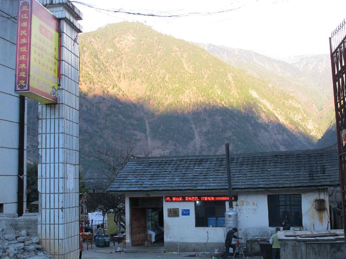 16:00回到丙中洛,在十几分钟就可以从头走到尾的街上逛,住宿点很多但条件和价格不同,我们选择入住24小时有热水、免费wifi和电热毯的玉洞宾馆(0886-3581285,13988689887),标间100元