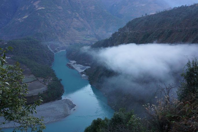进丙中洛第一个景点便是令人惊艳的怒江第一湾,可惜9:55怒江第一湾还是阴阳脸