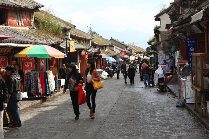 熙熙攘攘的古城游客
