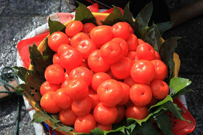 街边小贩的鲜红柿子。