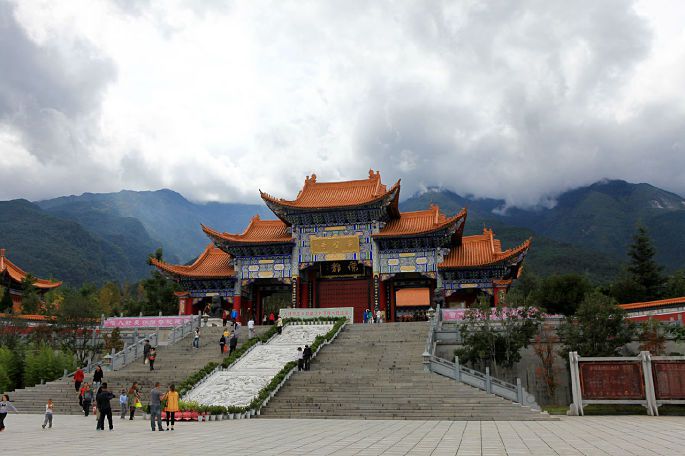 进了景区大门,首先看到的就是三塔!然后依次到大钟楼、观音殿,爬到半山才是崇圣寺山门。