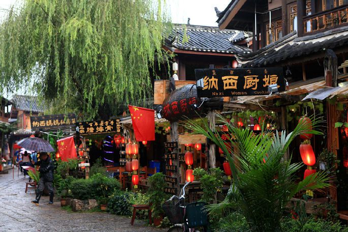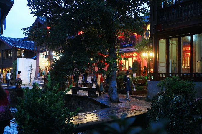 大约3点,丽江下起了阵雨。我们在时下时停的阵雨中逛古城,大约晚上9点才回酒店休息。