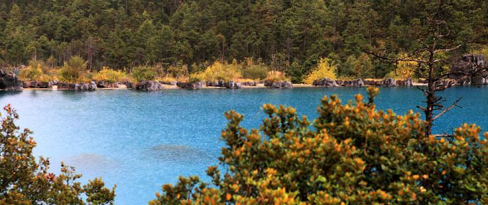 蓝月谷是白水河的发源地,其间有几个非常漂亮高山海子,其色湛蓝如月,故名。