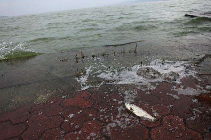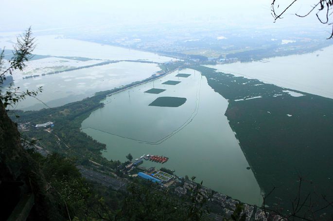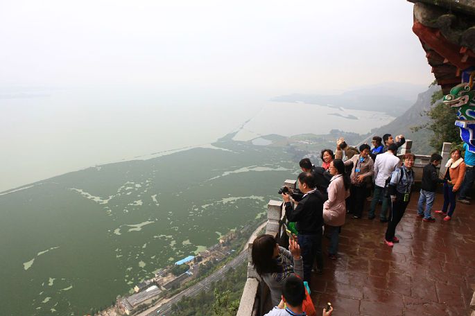 早就听说滇池污染,没想到有这么严重!水里全是绿藻!恐怕再有几十年也恢复不过来。