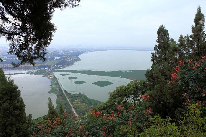 本来计划今天上西山,结果在滇池边望过去,西山完全笼罩在云雾中,放弃。逛了逛滇池大堤,就驱车前往大观公园,来个雨中游。大观公园门票16元/人。