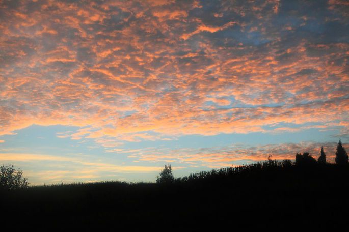 还没到曲靖,天色放亮,一片红霞。