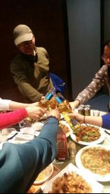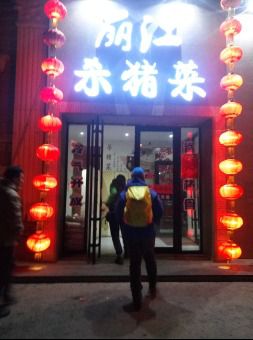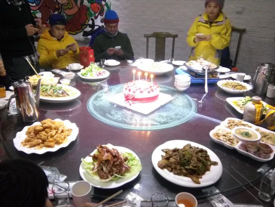开开心的玩了一下午,告别亚布力还要继续我们的旅程。晚上我们住的是海林市,金子叔叔又给大家安排了一顿超丰收的东北杀猪菜哦,这是当地一家非常有东北特色的饭店,丽江杀猪菜=美丽的黑龙江杀猪菜。嘿嘿,无敌缩写。为了纪念和天下民宿旅行网四年的友谊,还有一个美味的大蛋糕哦。大家都很开心,连平常不喝酒的麻麻都喝了一杯,其它叔叔阿姨就喝的更多了,因为这顿酒,第二天我发现了另一个好好玩的叔叔,我给他取了长长的一堆名字,接下来的三天旅程他就成了我的新玩伴,嘿嘿。