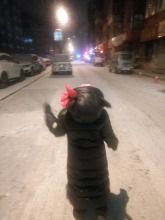 取完行李出门,天空还飘着小雪花,我好开心好开心,虽然外面温度才零下12度,但是麻麻和我全副武装,到也感觉不到冷意。机场大巴到市区,行李有点重,麻麻带我打了一辆出租,哈尔滨的出租起步价不贵,9元,10元到了我们住的酒店。