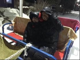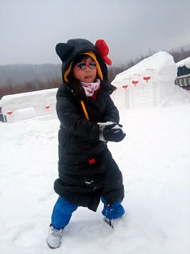 吃好喝好以后,我带着麻麻早早撤退了,我是小朋友需要早睡早起,明天我要玩个痛快咯!出门走到酒店的一小段路,全是厚厚的积雪,我从来没有看过这样的雪,亮晶晶的好像有水晶哦。50米的路我东玩西晚,硬生生走了10分钟,最后麻麻连哄带骗把我带回酒店,哎,真是个没劲的麻麻。