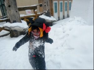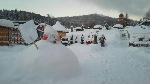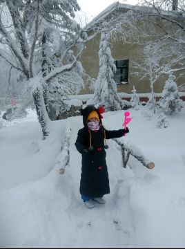 中午的时候穿越凤凰山的叔叔阿姨们回来了,领队叔叔通知我们下一站是雪乡,我们下午就要离开这里了,呜呜呜,不开心啊,好喜欢这个地方啊,白白的雪像大棉被,还有白色的雪蘑菇,好想一直在这里玩呢。