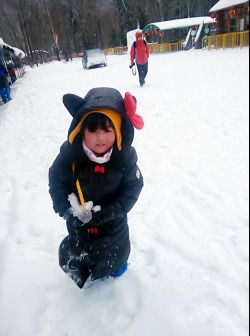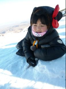 我忙着打滚,我麻麻忙着拍照,凤凰山实在是太美了,随便哪里拍拍都是明信片的感觉,麻麻的手机拍到最后被冻住了,活生生的关机了,没有拍到我们玩的滑雪圈,从一个高高的山坡上滑下来,太刺激了,第一次我不敢玩,舅舅和领队叔叔给我打气加油,玩了一次以后发现好好玩,我又玩了一次,真是个勇敢滴小朋友啊~~哈哈。上图上图
