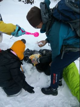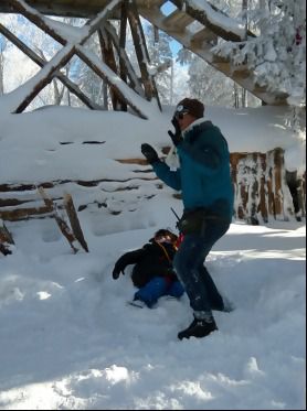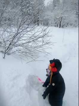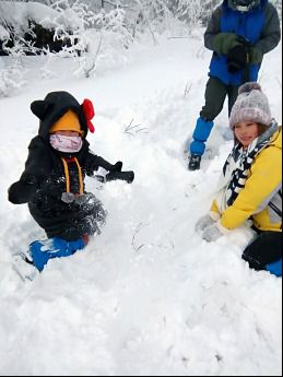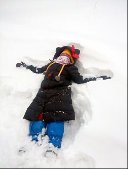 吃饱了有力气了,当叔叔,姐夫,舅舅们欺负人时,果果我也当仁不让的参加,帮忙添把雪,挖个坑什么的,