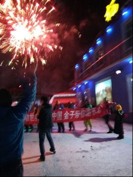 晚饭有自己包的饺子吃哦!还有香喷喷热乎乎的酒席等着我们。晚饭后冰天雪地里的篝火晚会和露台K歌台让我大开眼界呢。