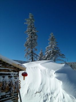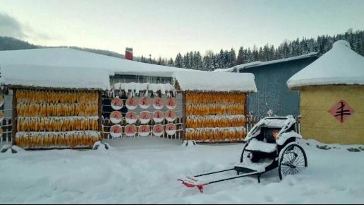 过了威虎山,进了地主院,漂亮的大雪山,原始感十足的木房子,还看到了漂亮滴地主婆哦,小丫头伺候着