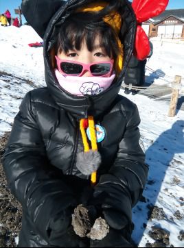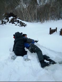 2015.12.16第三天,吃完了热乎乎的早晨,上午继续凤凰山,今天我们体验了超级超级刺激好玩的雪地摩托,零下17度,穿梭在丛林里,风和雪花在耳边呼呼的飘过,睫毛头发都结冰啦,到了山顶,雪更厚了,我和我最爱的“小疯子”姐姐开始了我们的挖洞寻宝活动,我们挖完洞,还种下了我麻麻,我和姐姐约好,秋天的时候我们再来东北,再来凤凰山,希望能收获好多好多的麻麻,嘿嘿。